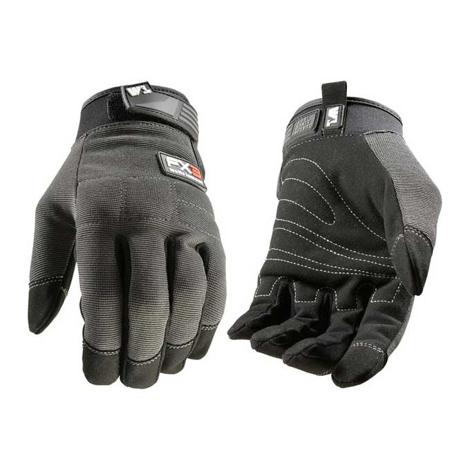 Equipped with a durable synthetic leather palm and a flexible spandex back. The lightly padded knuckles and palm create an additional layer of protection while you work. To create a comfortable, customized fit, we've outfitted these gloves with a neoprene wrist band and an adjustable closure. The thumb and first fingertips of each glove are touchscreen compatible, keeping you connected on the jobsite. Once you're finished with your gloves for the day, use the handy hanger tab to air them out or clip them together for future use.